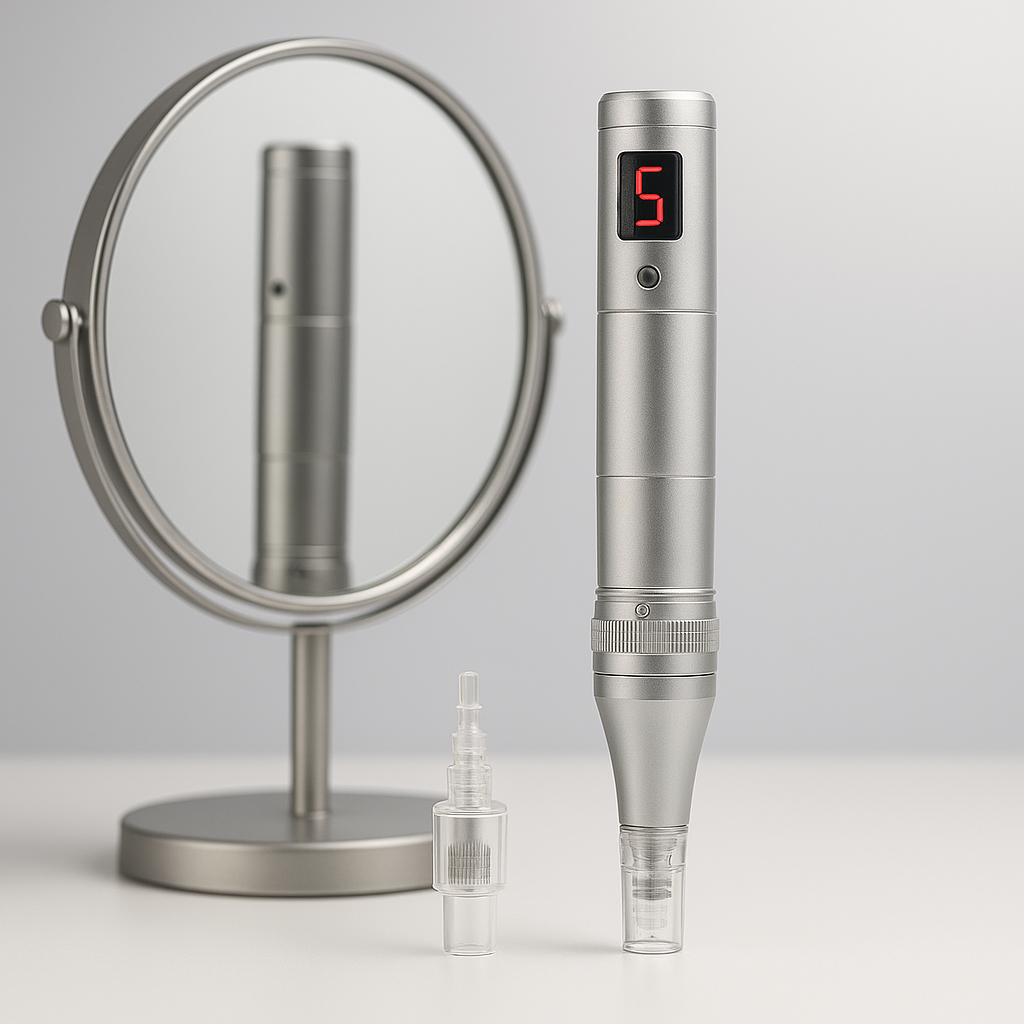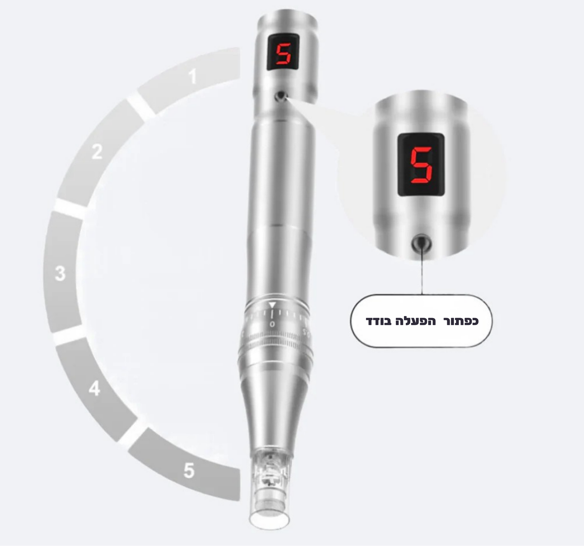 עט מיקרונידלינג מתקדם עם מחטים זעירות, מעורר את העור לייצור קולגן ואלסטין טבעי. מסייע להפחתת קמטים, טישטוש צלקות אקנה וסימני מתיחה, תוך שיפור מרקם וגוון העור שלך! התוצאה? מספק מראה חלק, רענן וזוהר!